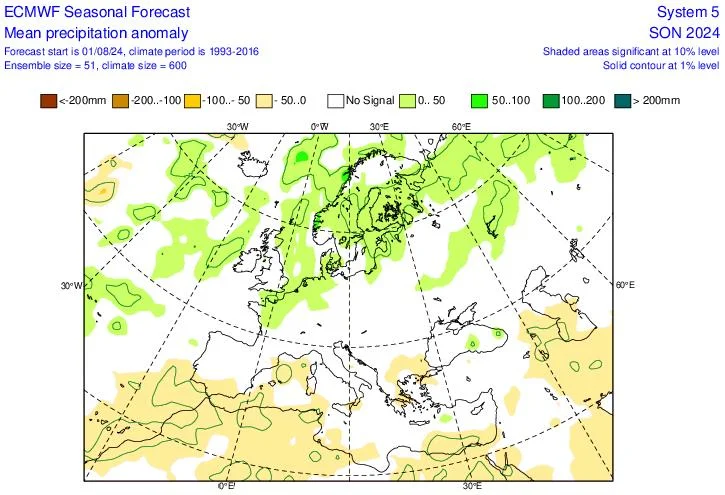 Ειδικά για την Ελλάδα, ενώ το multi-model εκτιμά ότι οι βροχοπτώσεις του φθινοπώρου θα κινηθούν στα φυσιολογικά επίπεδα, με βάση το ECMWF, υπάρχουν ενδείξεις για μειωμένες βροχοπτώσεις στα ανατολικά.