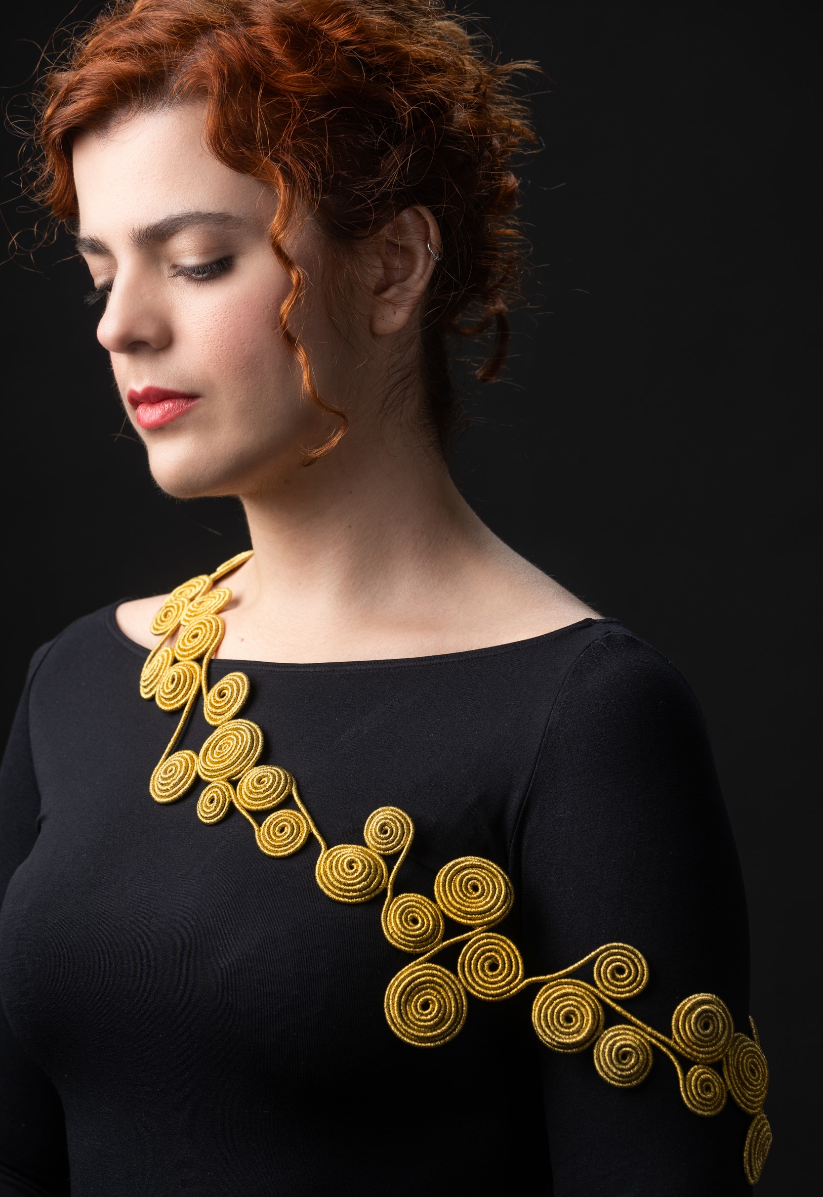 «Είναι εξαιρετικά εντυπωσιακό το γεγονός, ότι επιλέγοντας ως εργαλείο έκφρασής της και επίπονης χειρωναξίας ένα φαινομενικά μονοδιάστατο και επαναλαμβανόμενο υλικό, τη χρυσοκλωστή, την οποία βεβαίως διαχειρίζεται και τυλίγει - πλάθει η ίδια, είναι σε θέση να διατυπώνει τόσες ποικίλες ιστορικές, λαογραφικές και ενδυματολογικές αναφορές, να συνομιλεί με τόσα πολλά διαφορετικά ελληνικά γεωγραφικά υποσύμπαντα», λέει στο ΑΠΕ-ΜΠΕ η επιμελήτρια- ιστορικός τέχνης Ίριδα Κρητικού για τα κοσμήματα της Ελένης Σιούστη. «Ανασκάπτοντας- προσθέτει- αισθητικά ίχνη και συμβολικές ερμηνείες από την Κρήτη ως την Ανατολική Θράκη και την Σμύρνη ή την Κωνσταντινούπολη και από το Ιόνιο ως τα Δωδεκάνησα, το υλικό αυτό στα χέρια της Ελένης γίνεται επινοητική και ευκίνητη μαγική πρώτη ύλη, χρωματίζοντας από την αρχή ανέκδοτες ιστορίες ανθρώπων και τόπων».