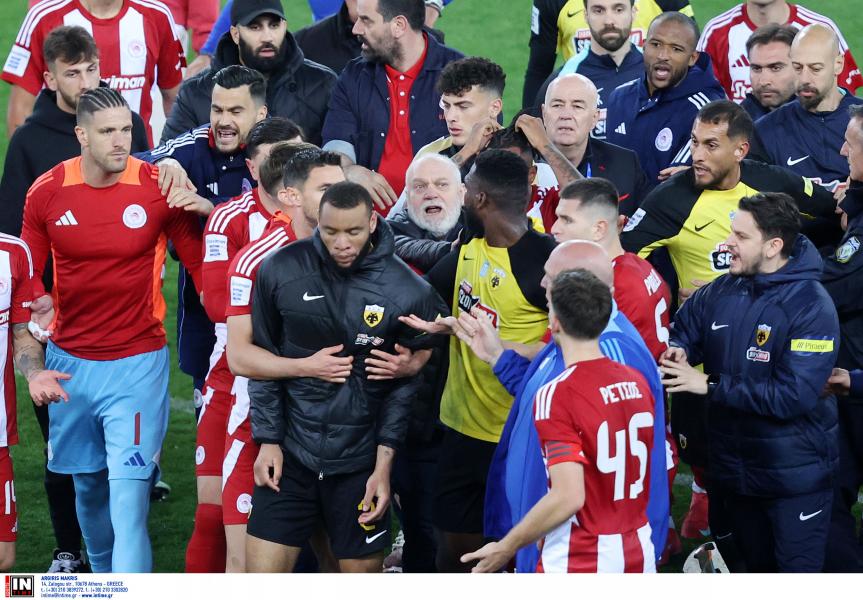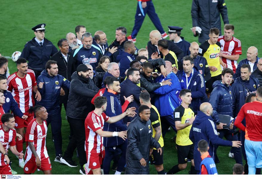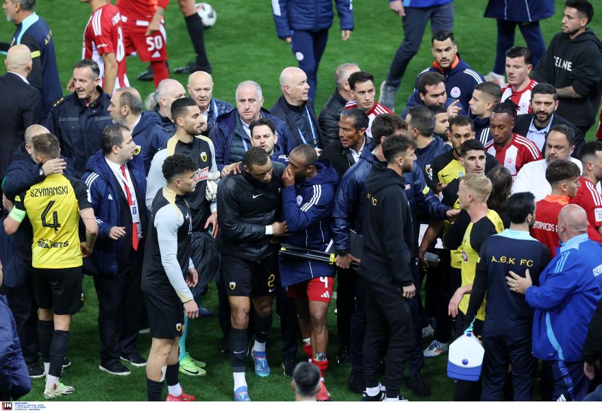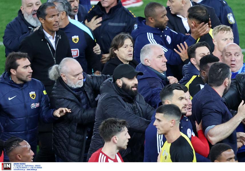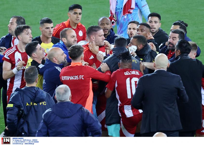 Χαμός επικράτησε μετά το φινάλε της μεγάλης αναμέτρησης Ολυμπιακός-ΑΕΚ στο Γεώργιος Καραϊσκάκης με τους ερυθρόλευκους να στέφονται και επίσημα πρωταθλητές Ελλάδος.