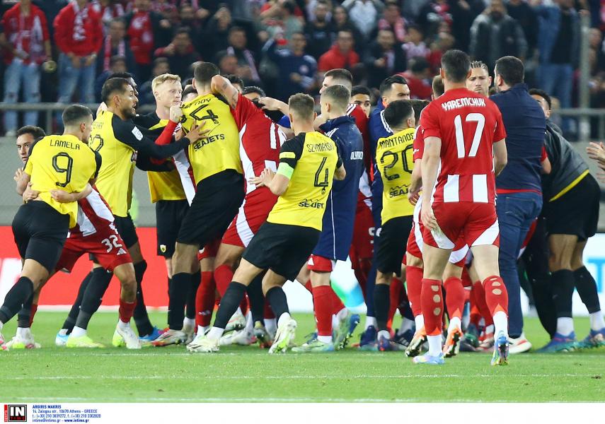 Ειδικότερα, παίκτες των δύο ομάδων πιάστηκαν στα χέρια και σημειώθηκε γενική σύρραξη με την κατάσταση ν' αργεί να εκτονωθεί καθώς υπήρξαν χειρονομίες εκατέρωθεν και σπρωξίματα.