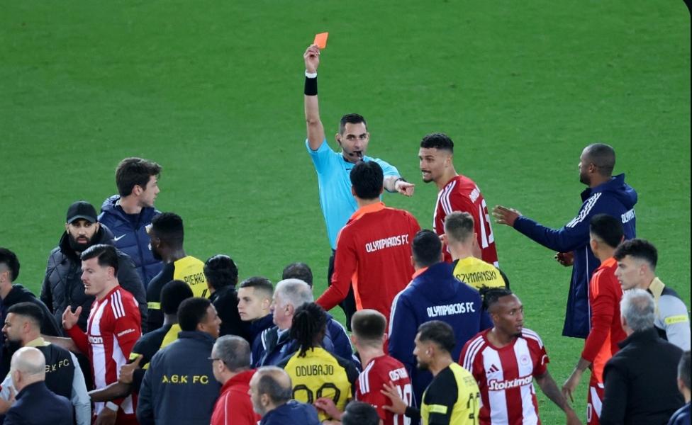 Σημειώνεται πως ο Ιταλός ρέφερι Κολόμπο απέβαλε τους Αλέξανδρο Πασχαλάκη και Νταβίντ Κάρμο από πλευράς ερυθρόλευκων ενώ αντίστοιχα για τους κιτρινόμαυρους τιμωρήθηκαν με κόκκινη κάρτα οι Αρόλντ Μουκουντί - Άντονι Μαρσιάλ και ο τεχνικός Ματίας Αλμέιδα.