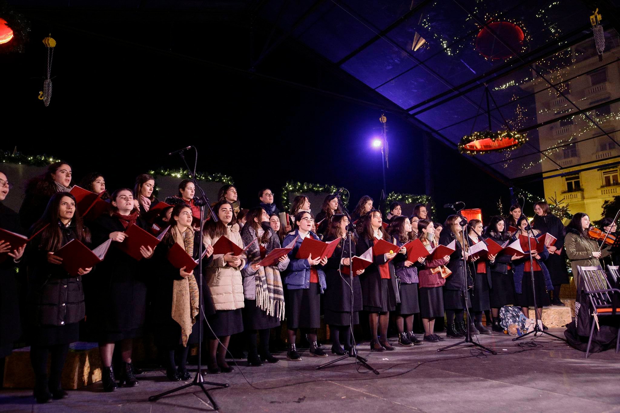 Με χριστουγεννιάτικες μελωδίες, τραγουδισμένες από τα μέλη παιδικών και νεανικών χορωδιών, πλημμύρισε απόψε η πλατεία Αριστοτέλους, στη Θεσσαλονίκη.